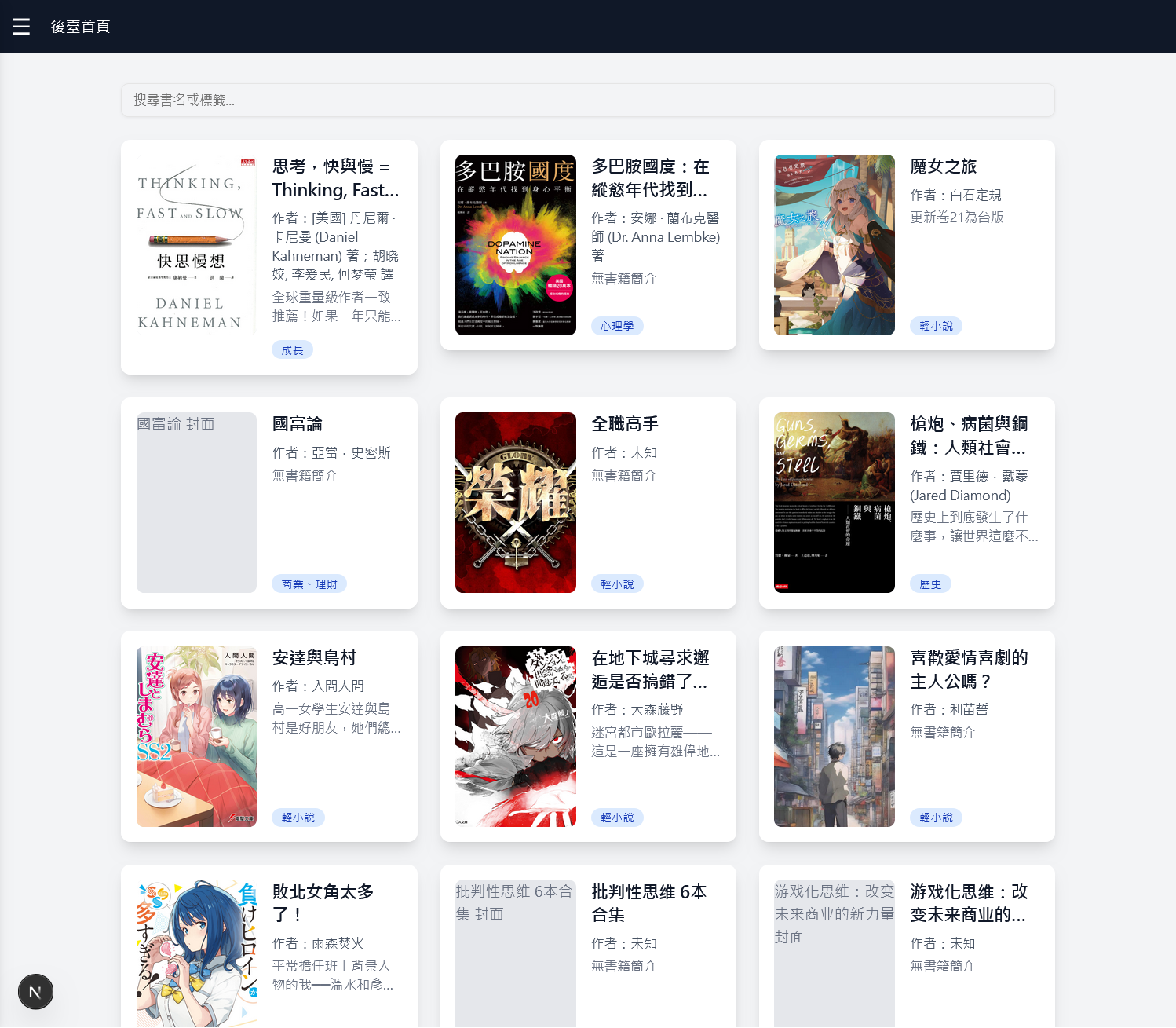 - 書本瀏覽: 提供一個介面讓我可以瀏覽書庫中的所有書籍。